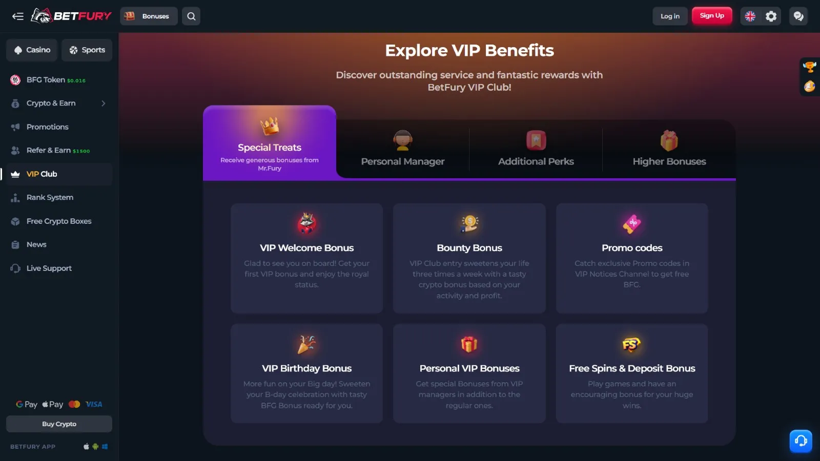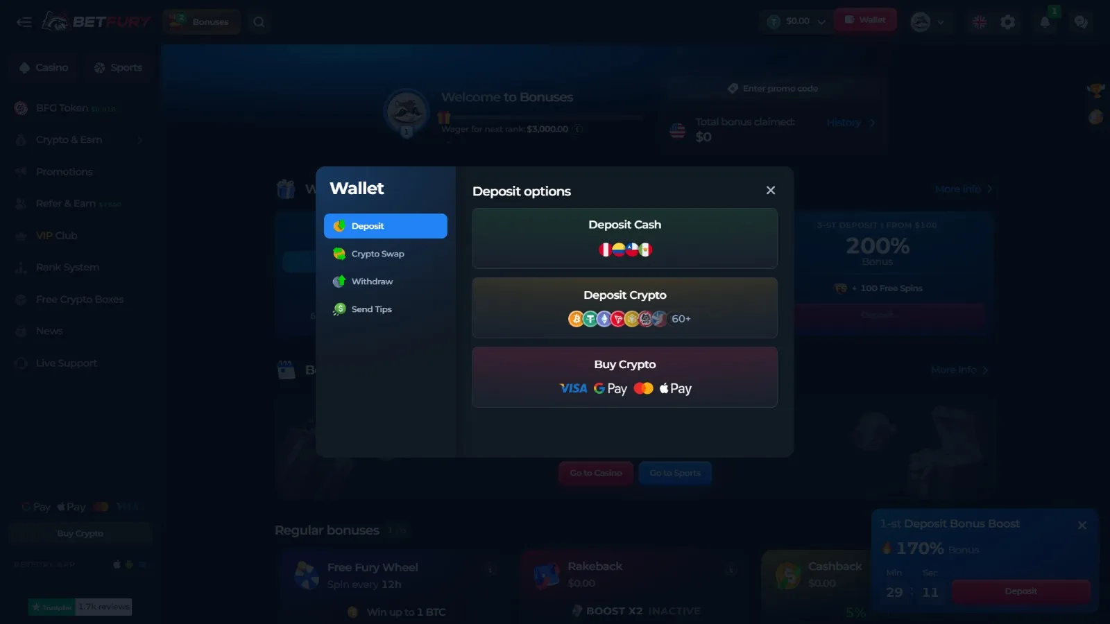 BetFury also has various bonuses to delight players. To welcome you, it offers you the opportunity to claim up to 1 BTC from spinning its Fury Wheel. It also offers a unique opportunity for you to win crypto faucets every twenty minutes.
