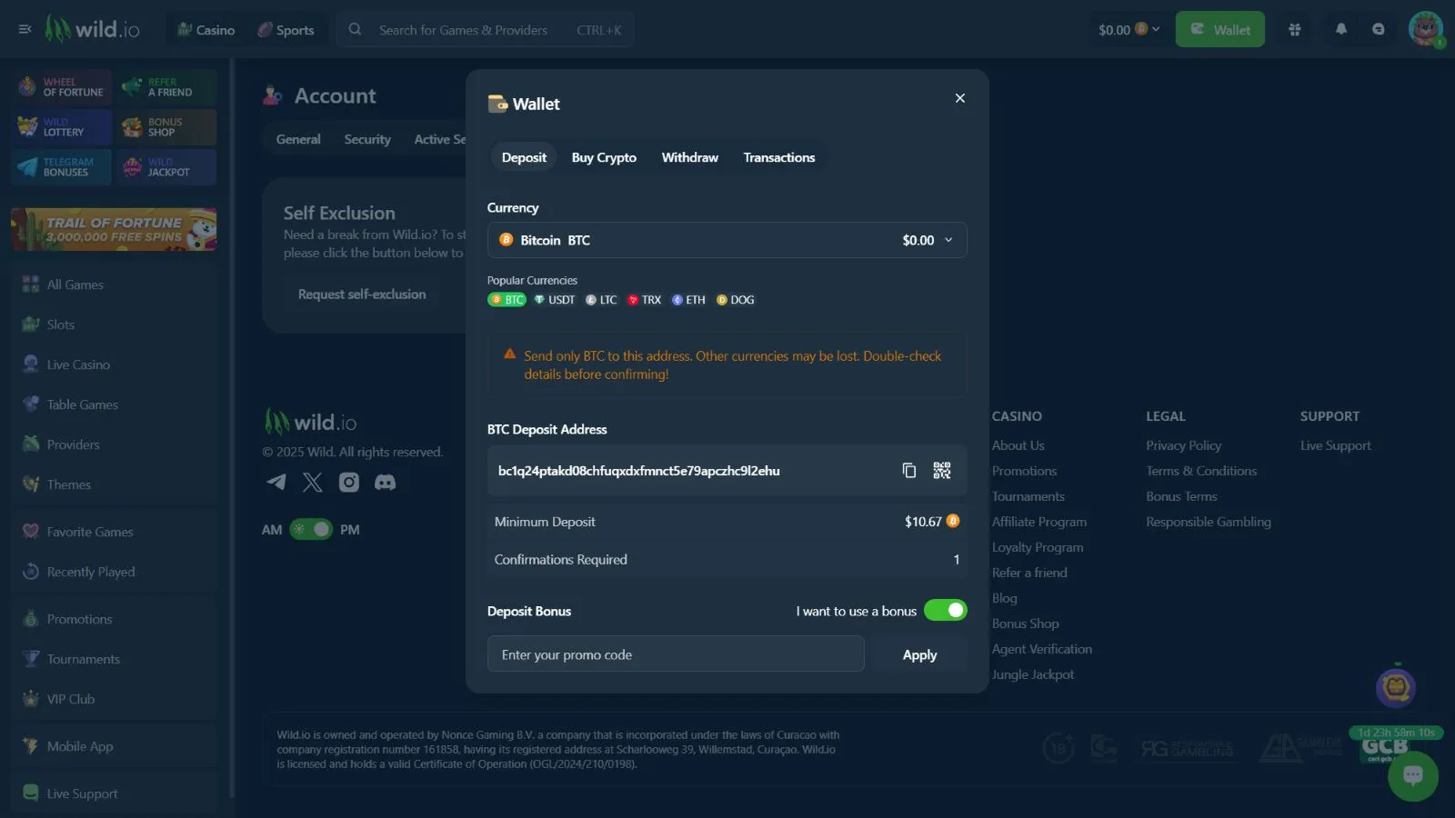 When it comes to payment processing, you will enjoy maximum speed. There are over 60 cryptocurrencies and tokens to choose from. The site makes it easy for you to gamble and make payments anonymously, as you can sign up via MetaMask, Telegram, or even Tron Wallet.