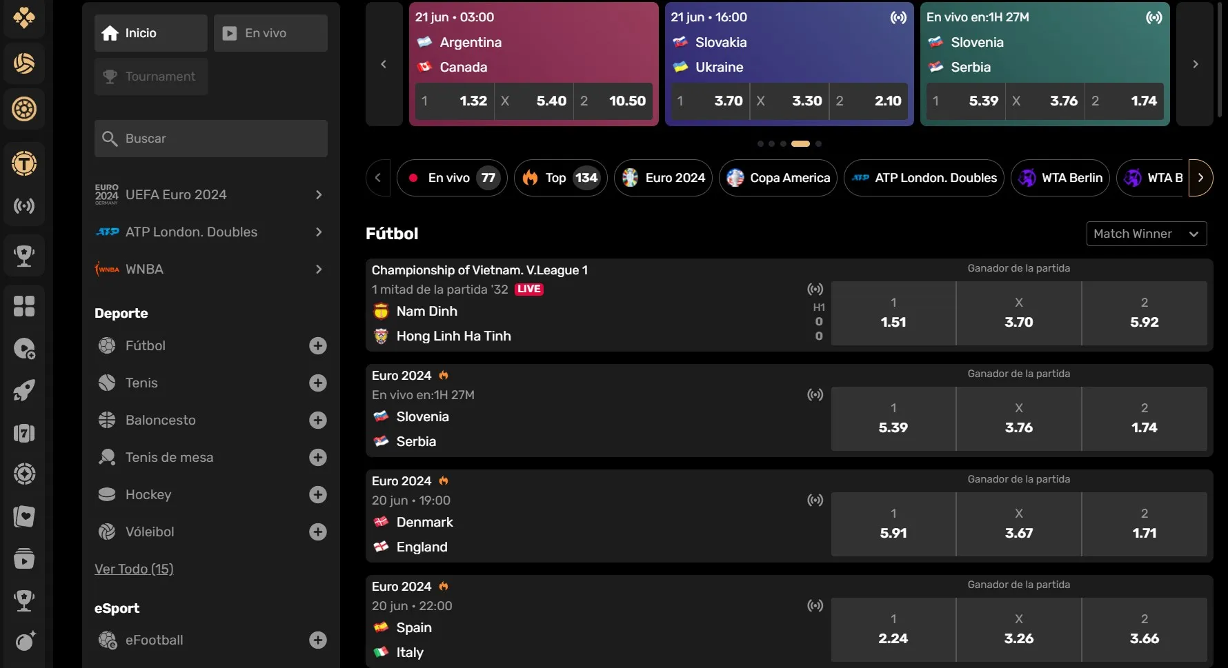 Una de las características destacadas del Sportsbook de Fairspin es su diseño amigable para el usuario. En lugar de una interfaz desordenada, el sitio organiza sus opciones de apuestas en bloques grandes y ordenados, cada uno dedicado a un deporte específico y mostrando los partidos más populares en curso y los próximos. Además, todas las opciones de apuestas en vivo están convenientemente ubicadas en una pestaña separada en la parte superior de la pantalla para un fácil acceso.