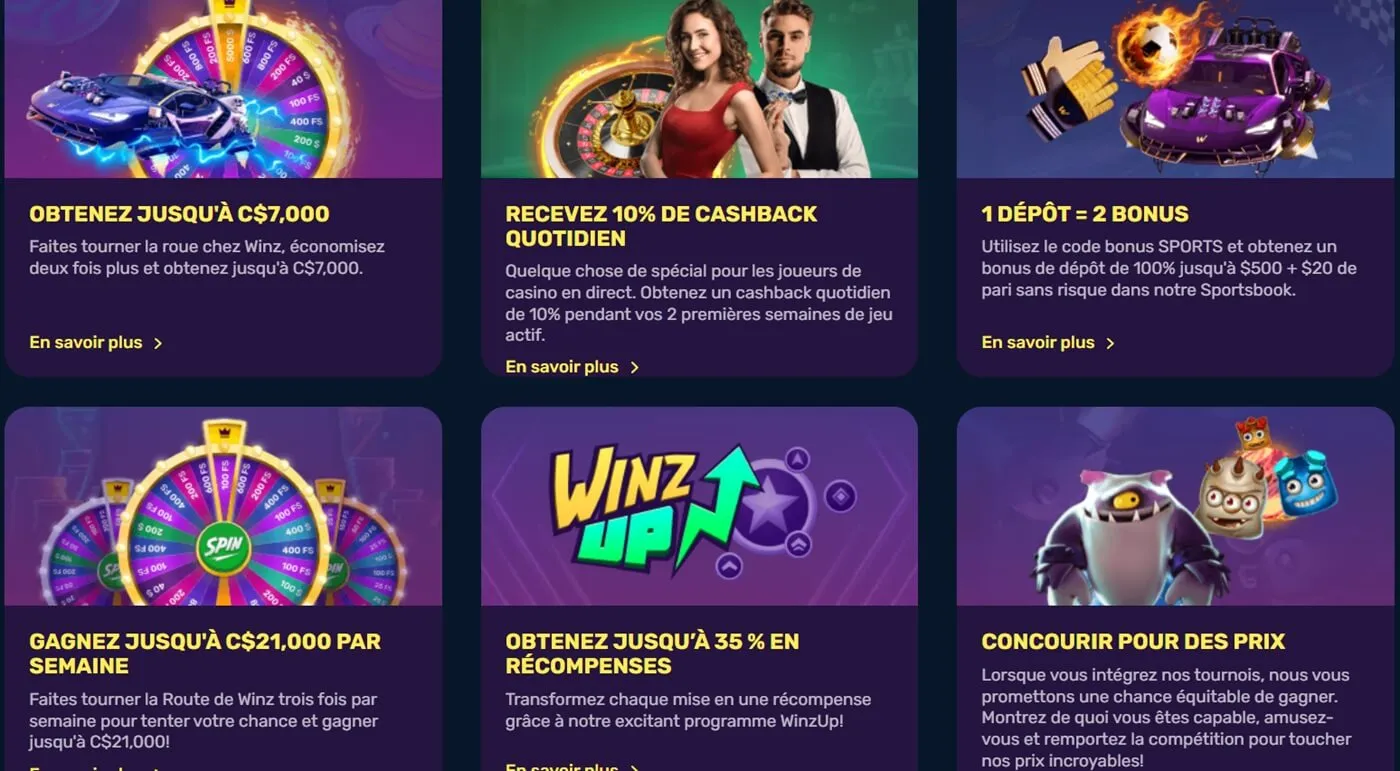 Si vous appréciez l’esprit de compétition, il y a aussi de bonnes nouvelles. Winz organise régulièrement des tournois de jeu et vous pouvez y gagner de belles sommes d’argent. Ces concours sont organisés séparément pour les jeux de machines à sous et les jeux de table.