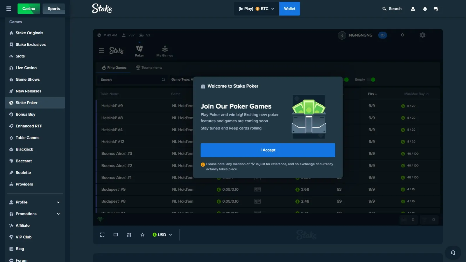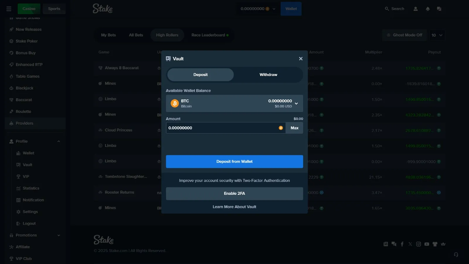 Stake is very serious casino and betting platform that is solely focused on gambling with crypto. You can see its professionalism through its partnerships with Drake, Watford FC, UFC, Kun Aguero, Israel Adesanya, and many more. Except for BTC, you can play its Mines game with ETH, USDT, EOS, TRX, XRP, LTC, DOGE, and BCH.