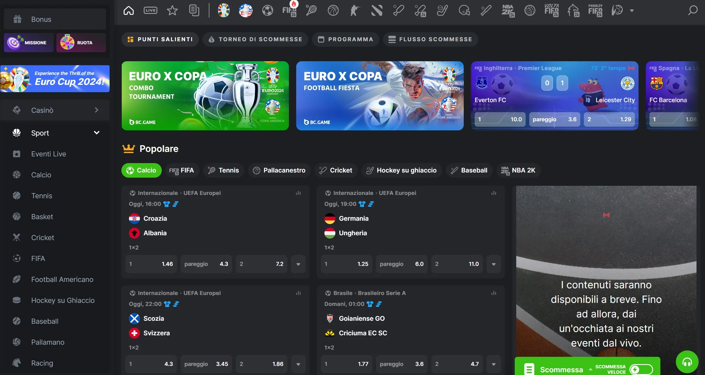 L'interfaccia è molto accattivante perché fornisce ai giocatori informazioni minuto per minuto sugli eventi sportivi su cui scommettere. D'altra parte, a differenza di alcuni suoi concorrenti, BC.Game non offre lo streaming live degli sport.