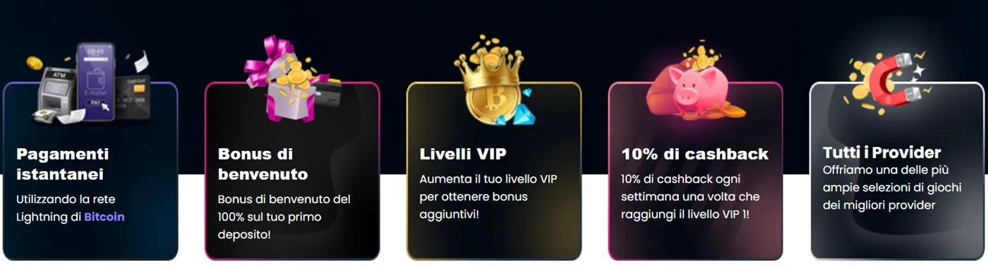 I bonus e le promozioni abbondano su Betplay.io, con l'obiettivo di premiare i clienti abituali e accogliere i nuovi arrivati. Di seguito troverai una panoramica di tutte le offerte, i programmi fedeltà e i trattamenti speciali in corso: