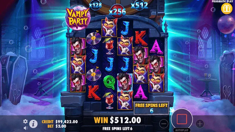 Vampy Party unfolds on a six-reel grid with a whopping 3,600 winning ways. It is centered around a funky vampire and his trusty bat companion who are set to have the fun of their life in a soiree.