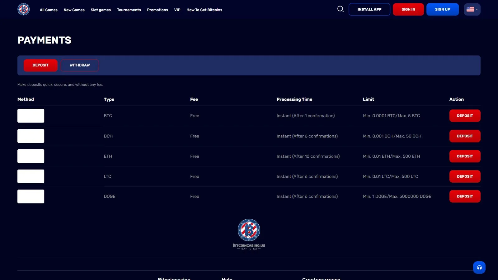 The welcome package at BitcoinCasino.us makes it possible to get up to 5 BTC as a bonus on your first three deposits on the website. If you make deposits in Ethereum or other currencies, the bonus amount will be equivalent. The maximum bet amount for the bonus money is limited to 0.2 mBTC.