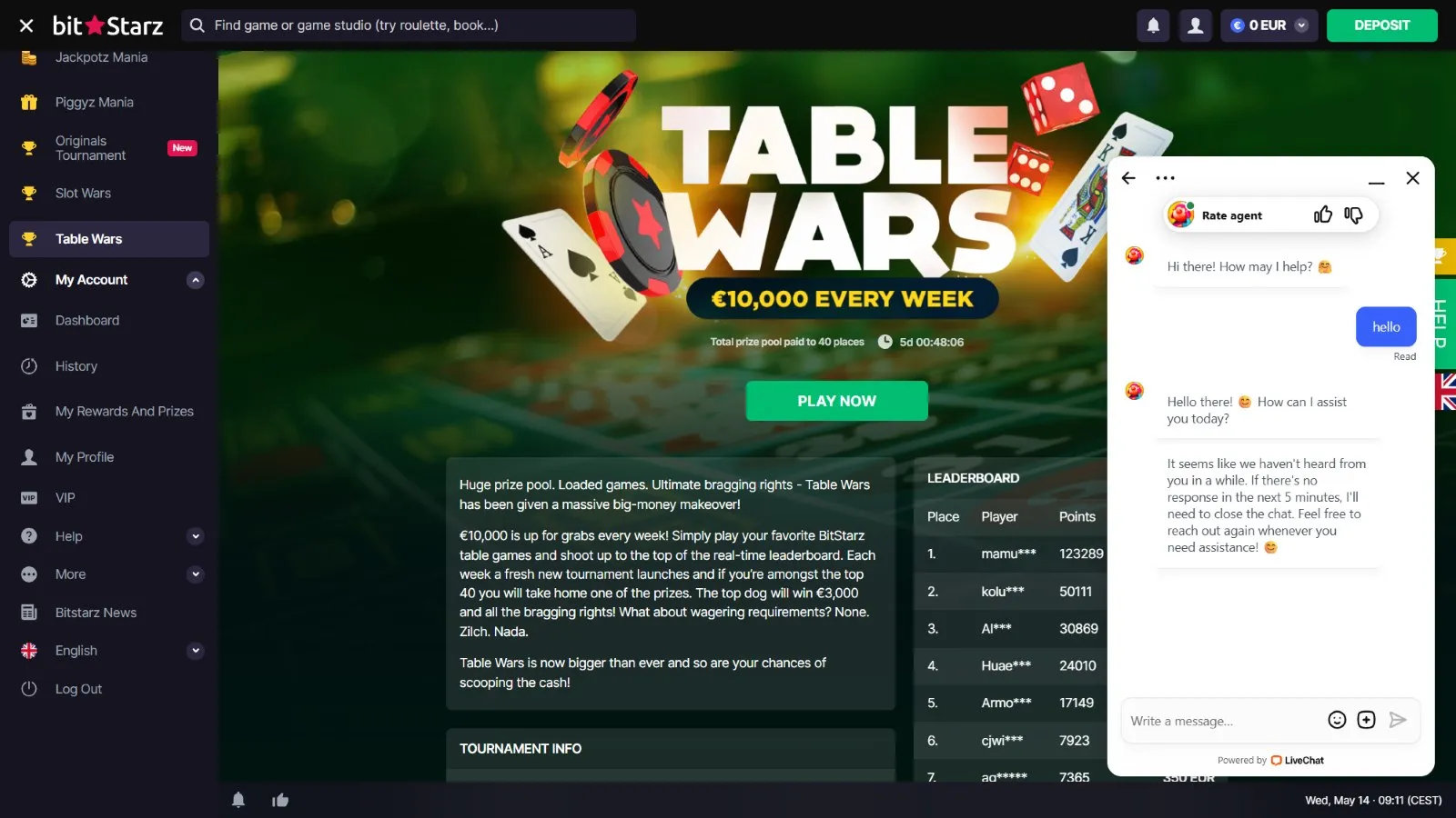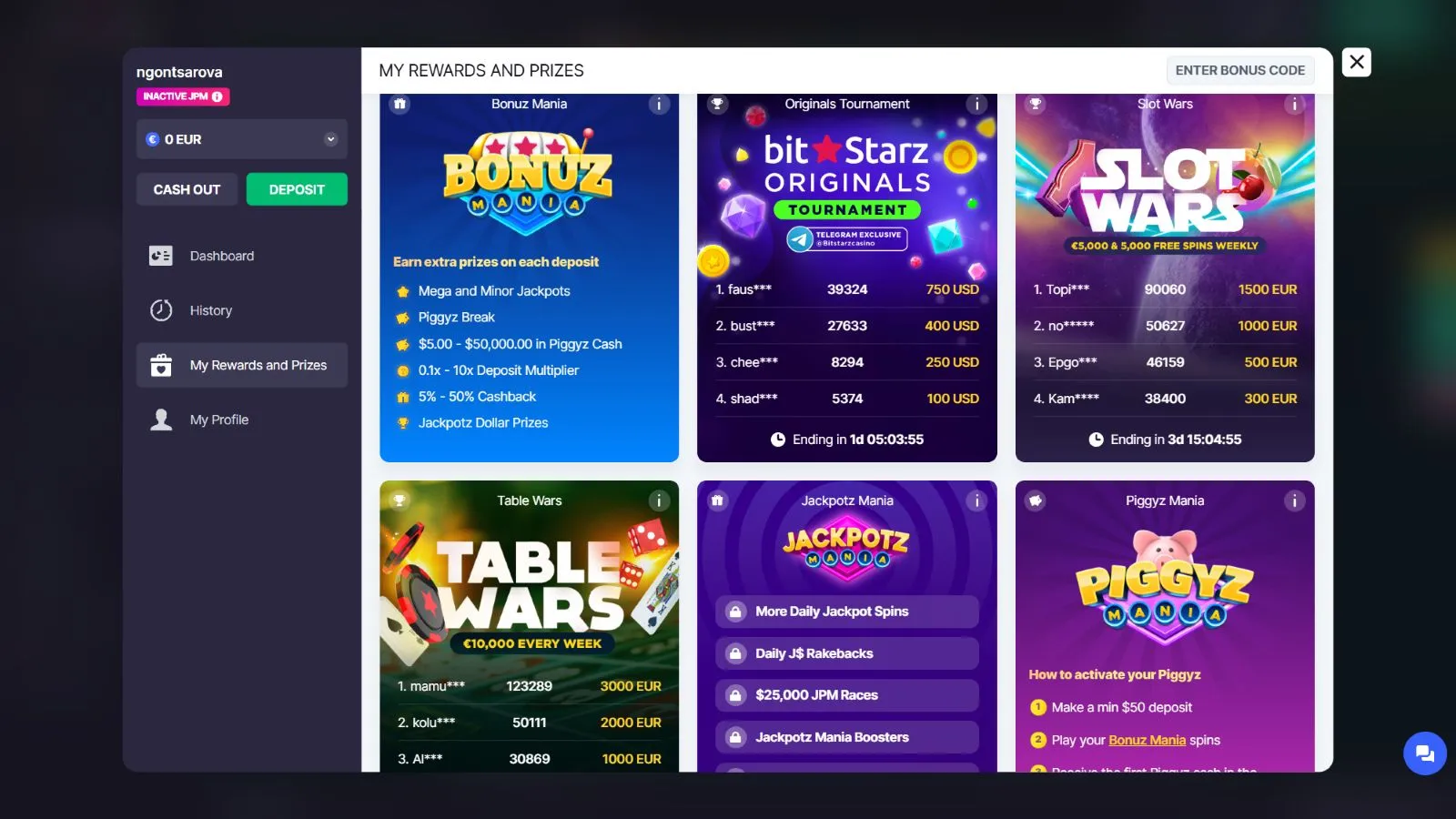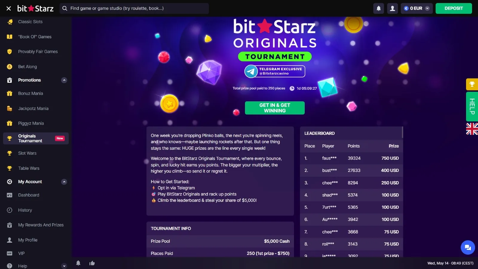 In addition to temporary promotions, the BitStarz Ethereum casino allows you to take part in several amazing tournaments. Gambling contests are intended for people that enjoy slots and table games, as well as those who would not mind being the last man standing in a battle royale competition. The prize pools of these tournaments range from €5,000 to €10,000.