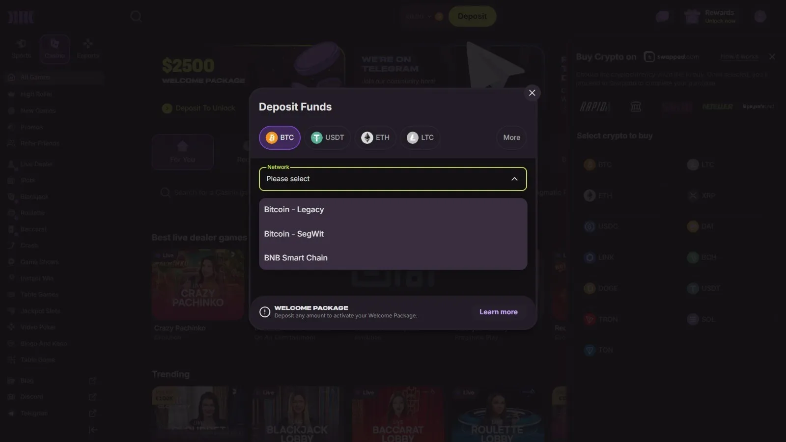 Your deposit funds should be reflected instantly. Some Ethereum casinos offer options for depositing crypto using a fiat method, essentially buying ETH straight from the platform.