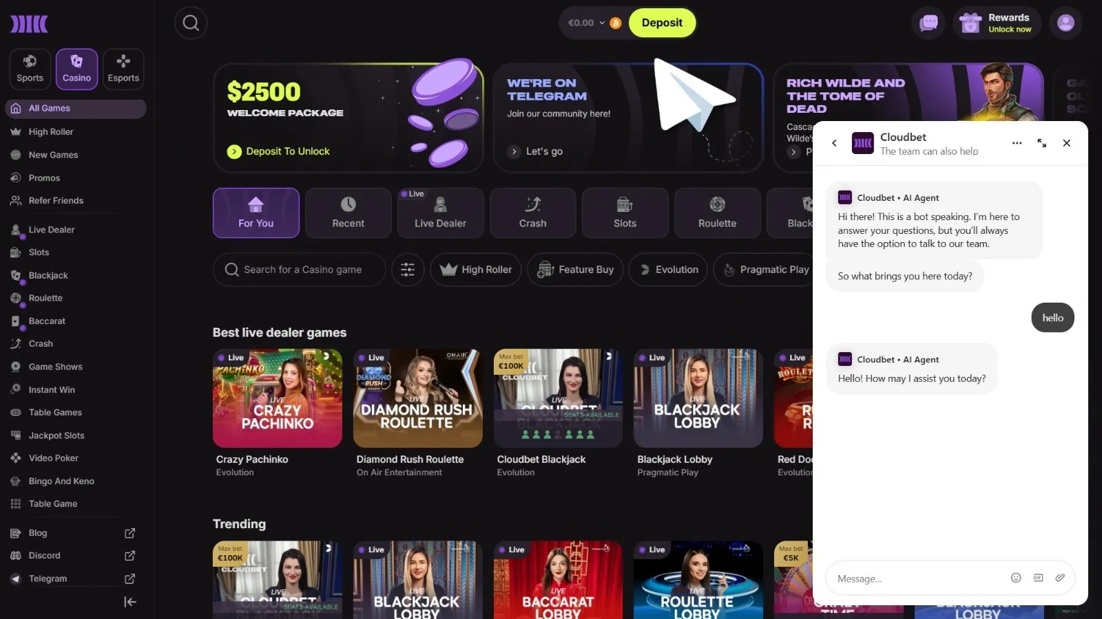 The BC Game lobby has about two hundred slots from well-known providers and 16 original games, including dice, roulette, blackjack, keno, and other casino games. Besides, you can use Ethereum to play live casino games as well. They come from such providers as Evolution Gaming, Ezugi, SA Gaming, and Pragmatic Play.