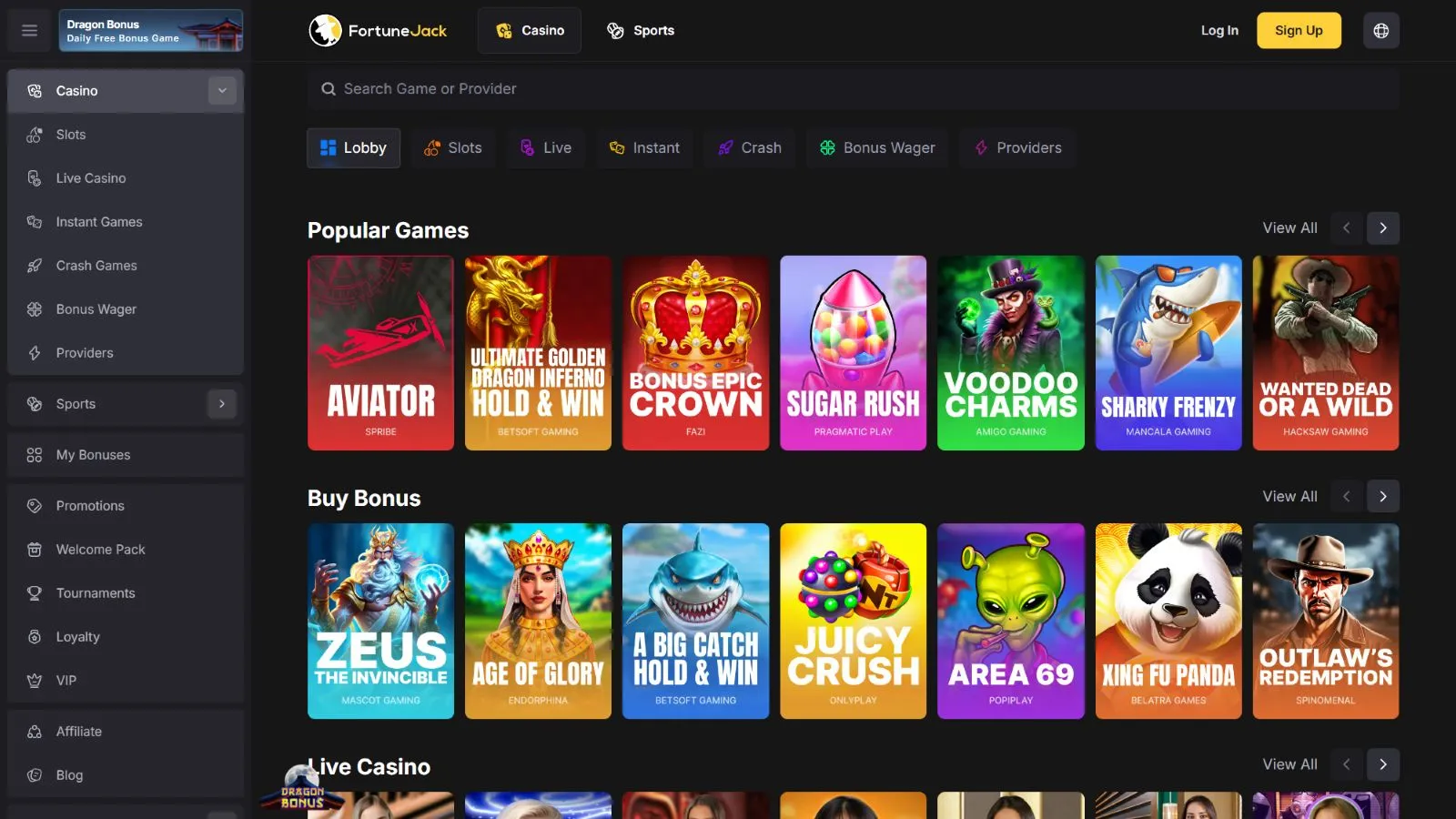 FortuneJack is one of the most popular cryptocurrency-only casinos. Besides Ethereum, you can use Bitcoin, Bitcoin Cash, Litecoin, Dash, Zcash, TRON, Dogecoin, and Monero to play casino games. Crypto casino FortuneJack has some unique features that you will not find on other Ethereum gambling sites.