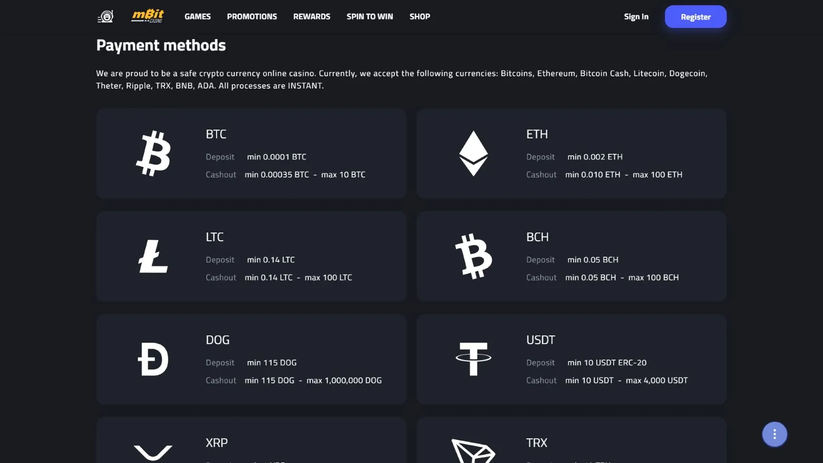 All those who like to play casino games with ether will enjoy BC.Game. There are many promotions and ways to get some free cryptocurrency while meeting and communicating with other gamblers. Crypto casino BC.game is intended for the cryptocurrency community, so fiat currencies are not accepted here. You can make deposits with one of 14 virtual currencies instead.