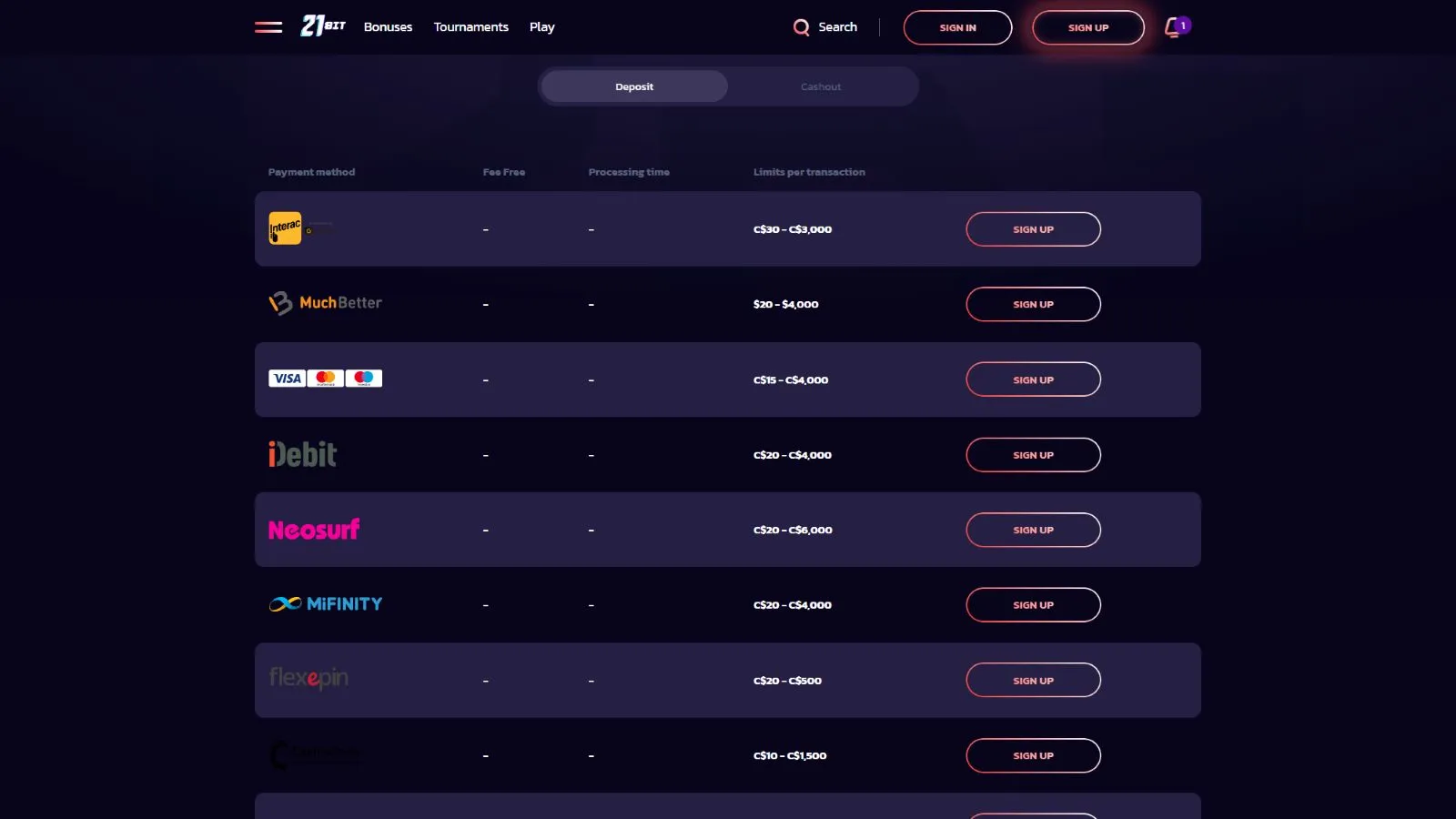 Minimalna kwota depozytu w 21Bit casino różni się w zależności od metody.