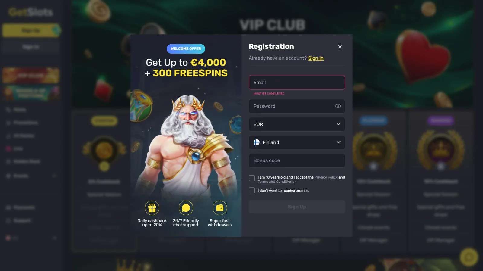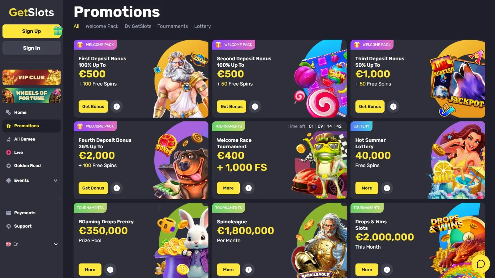 Większość nowych kasyn online oferuje swoim klientom lukratywny bonus powitalny. W kasynie GetSlots otrzymasz taki bonus w wysokości do 750 $ plus 150 dodatkowych spinów za pierwsze trzy depozyty. Obecni gracze mogą również korzystać z częstych i ciekawych promocji odbywających się przez cały rok. Jednak zanim przejdziemy dalej, powinniśmy zauważyć, że nie wszyscy gracze mogą grać w GetSlots Casino. Niektóre z krajów objętych ograniczeniami to między innymi Szwajcaria, Wielka Brytania, Szwecja i Stany Zjednoczone.