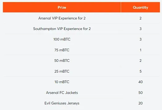 For every 10 mBTC that you wager on any game, you will earn 1 ticket for the final draw that is going to take place on January 12, 2022. Each day, you can claim a maximum of 3 tickets. Please note that the days are counted according to the GMT time zone.