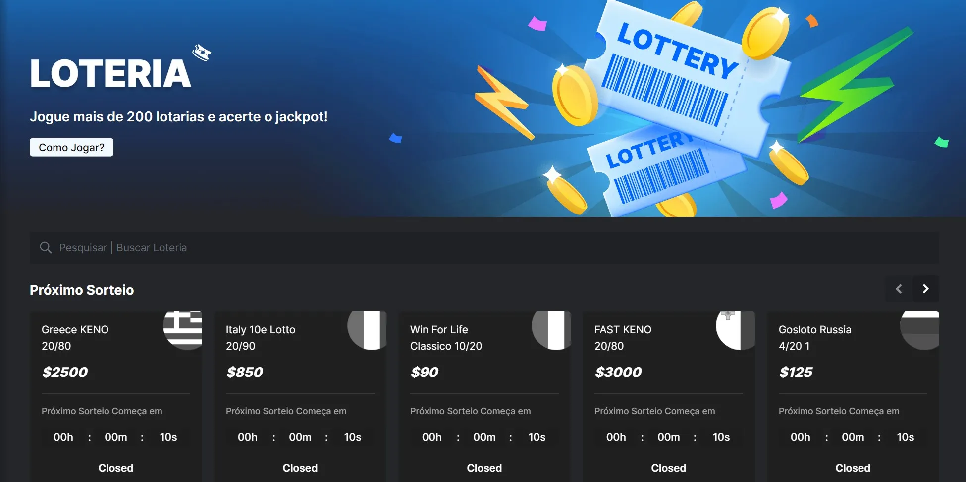 Você pode escolher entre uma ampla variedade de sorteios de loterias internacionais navegando pelos sorteios disponíveis no site ou usando o carrossel na página inicial para ver os próximos sorteios.