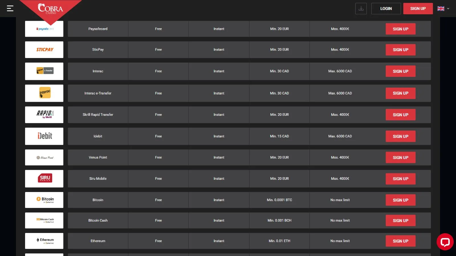 Junto com o Winz, o CobraCasino é um dos melhores novos cassinos de bitcoin para quem mora no Brasil. Tudo dependerá de você qual você gostar mais, afinal ambos são ótimos para atender todas as suas necessidades de apostar.