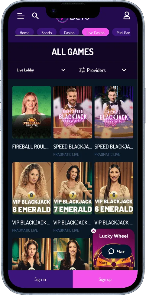 The 7Bets Live Casino has a decent collection of 185+ premium live games. This lobby features all types of classic casino games you can think of. There are cards, roulette, and dice games, all offered in numerous variants.