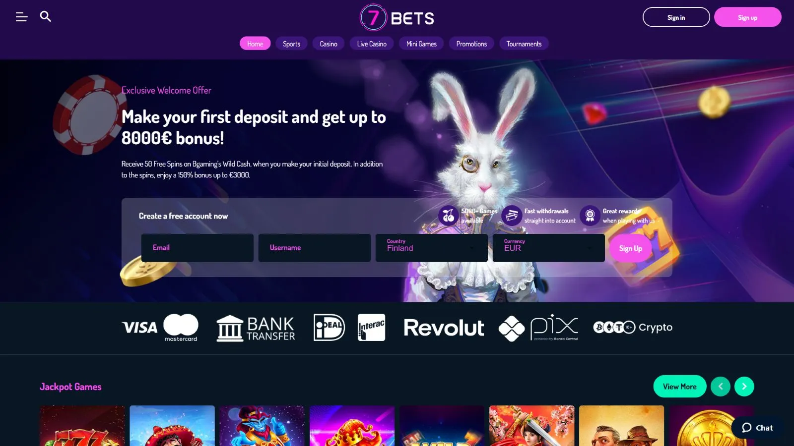 7Bets powers its casino with a solid banking system that makes payment easy for players in different locations. It supports cryptocurrencies and fiat currencies, accepting a wide range of cards, e-wallets, and instant bank transfer methods.
