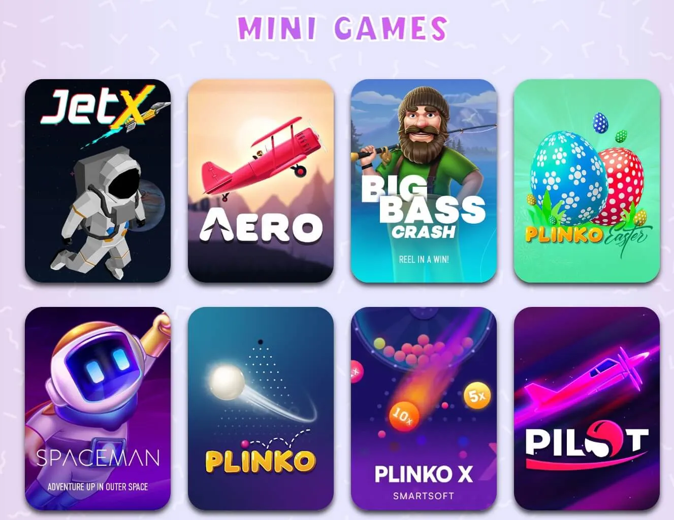 The games in this section are designed by providers, such as BGaming, Smartsoft, Pragmatic Play, Gamzix, Turbo Games, InOut, and Netgame. These game providers ensure that the games offer more than just their regular gameplay. They add extra features that spice up the sessions and provide potential for more rewards.