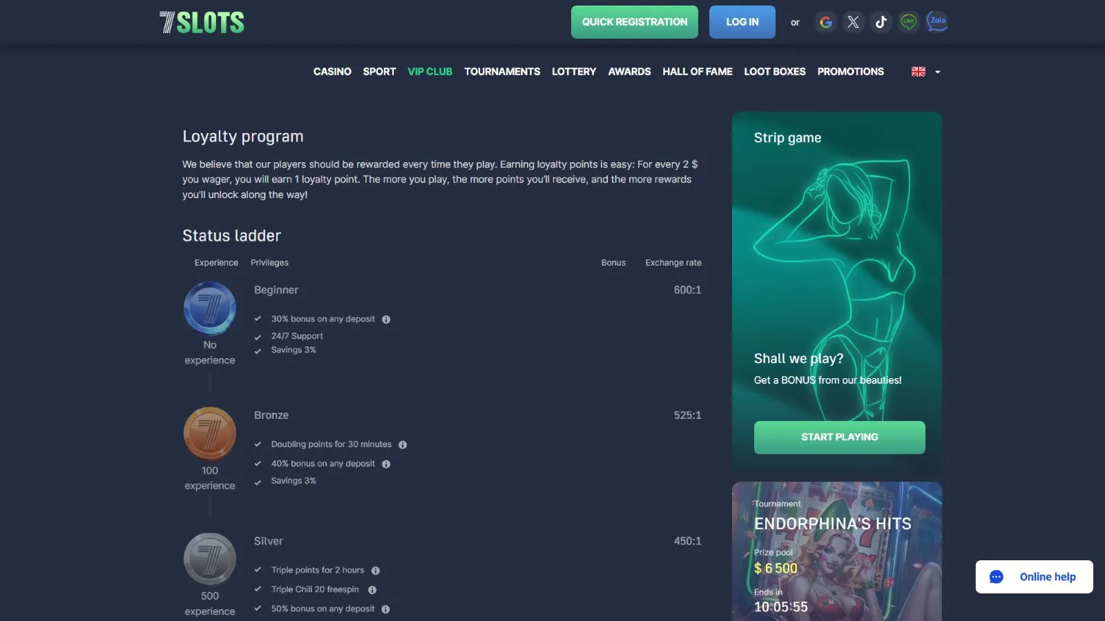 In terms of specific rewards, 7Slots casino’s VIP Program provides a vast array of privileges that increase in value the higher the level reached by a player. These benefits include: