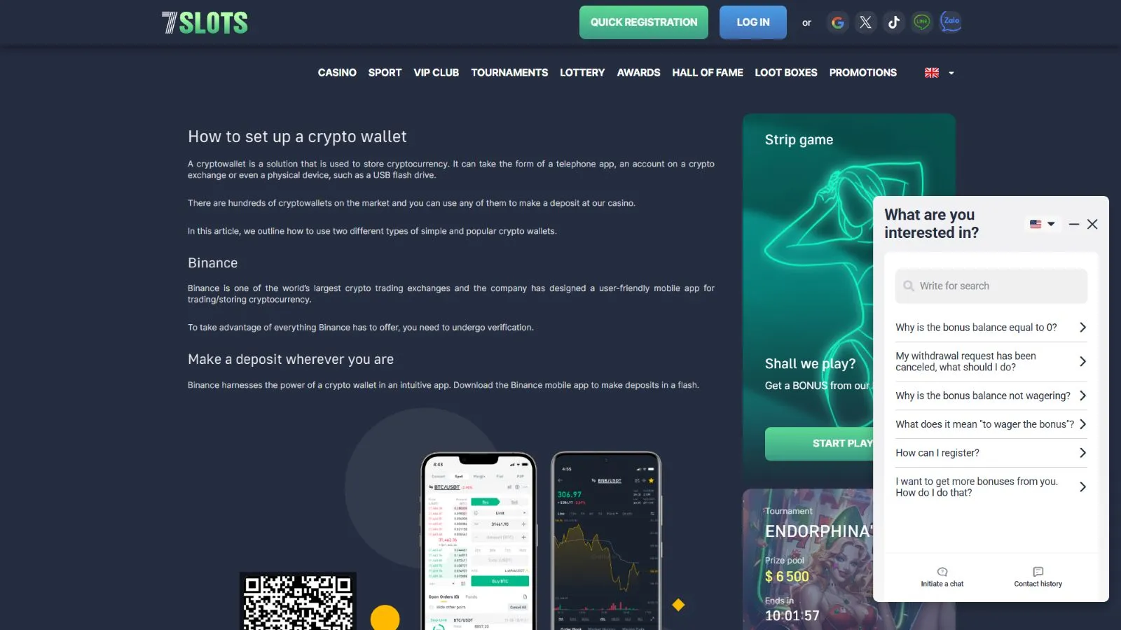 To join 7Slots, head over to the casino website and click the ‘Register in 10 seconds’ button. Then choose whether you want to register via email or mobile number. In the next step, fill out the form with your username, password, and your account currency. Alternatively, you can also register in a few clicks through your social media account.