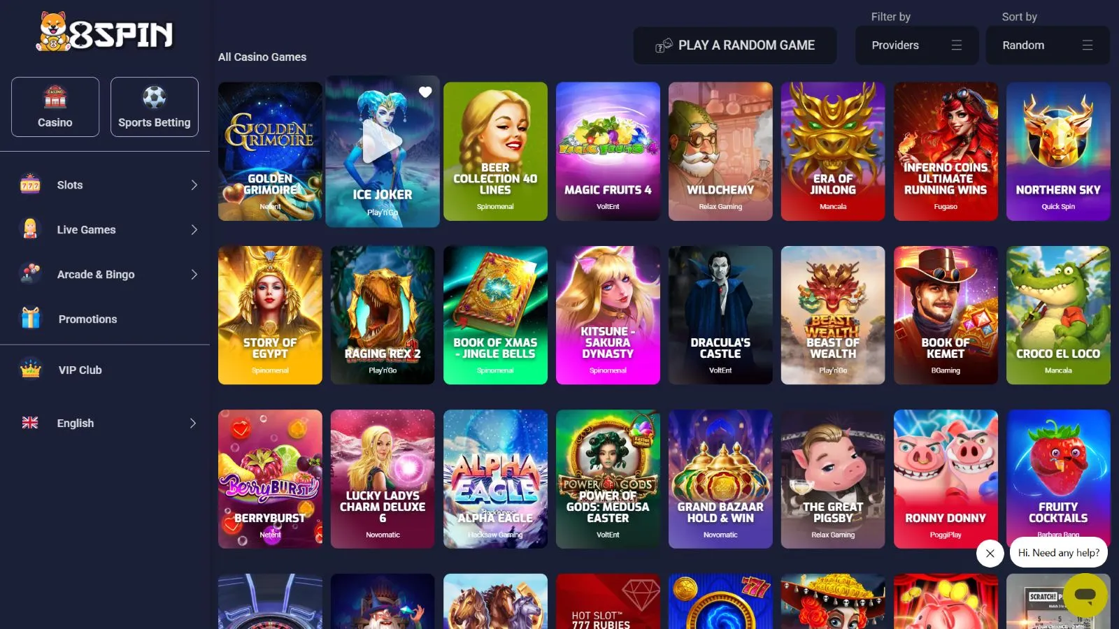 8Spin Casino Games & Providers