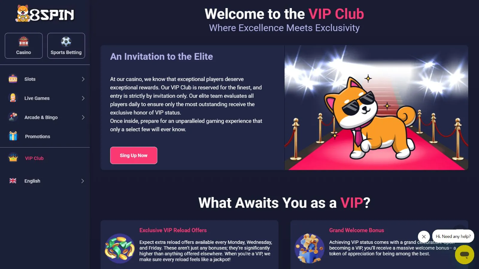 8Spin reserves its most exclusive rewards for the VIP Club. Entry into this club is strictly by invitation. The casino's team evaluates players’ performance and selects only those who demonstrate outstanding play to join the club.