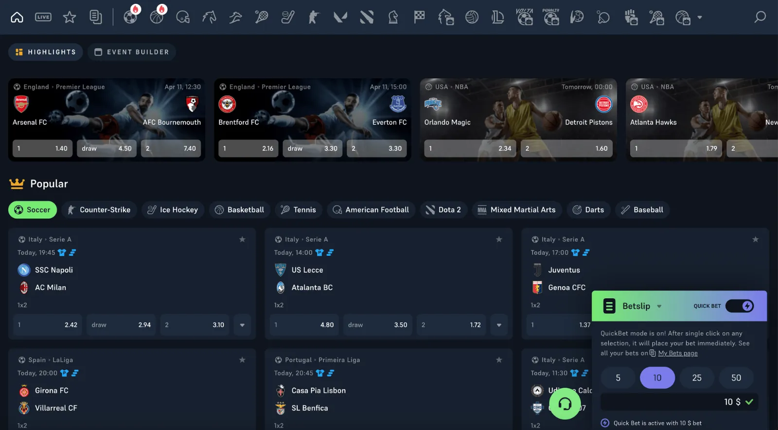 - 70+ sports betting options
