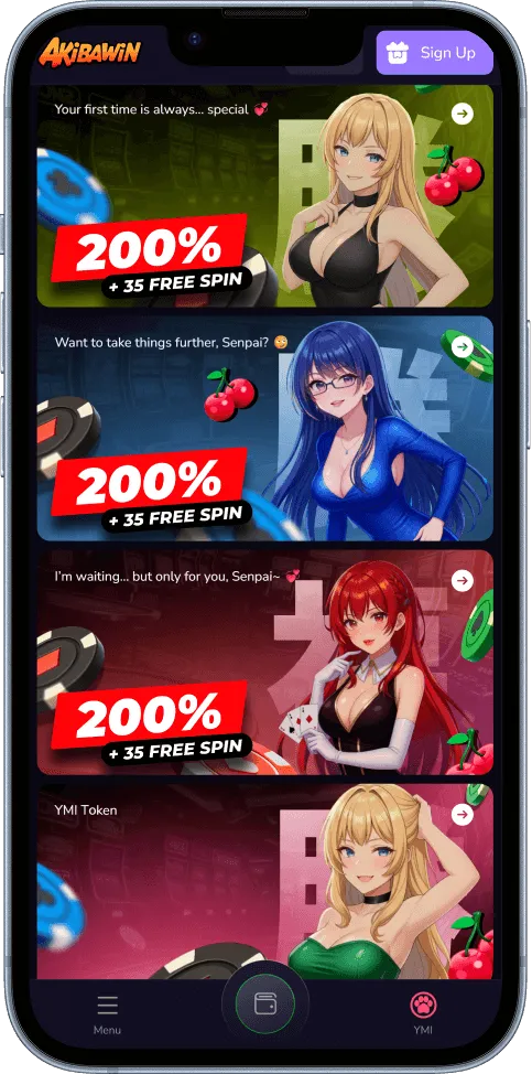 Akibawin welcomes you with a flexible welcome bonus worth up to 200% + 35 free spins. The minimum entry is just 5 USDT, and the bonus percentage increases as you deposit more.