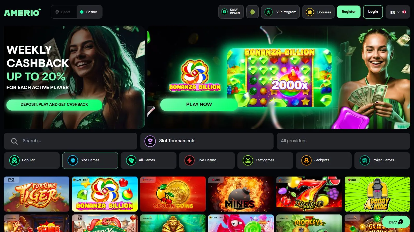 If you want a crypto casino with plenty of game choices, many bonuses, multilingual support, and fiat/crypto payments, Amerio is worth a try.