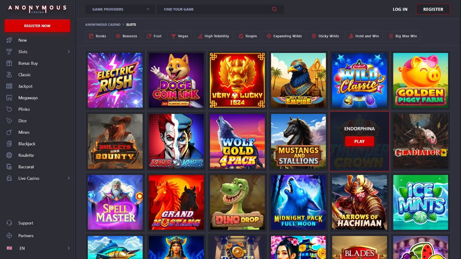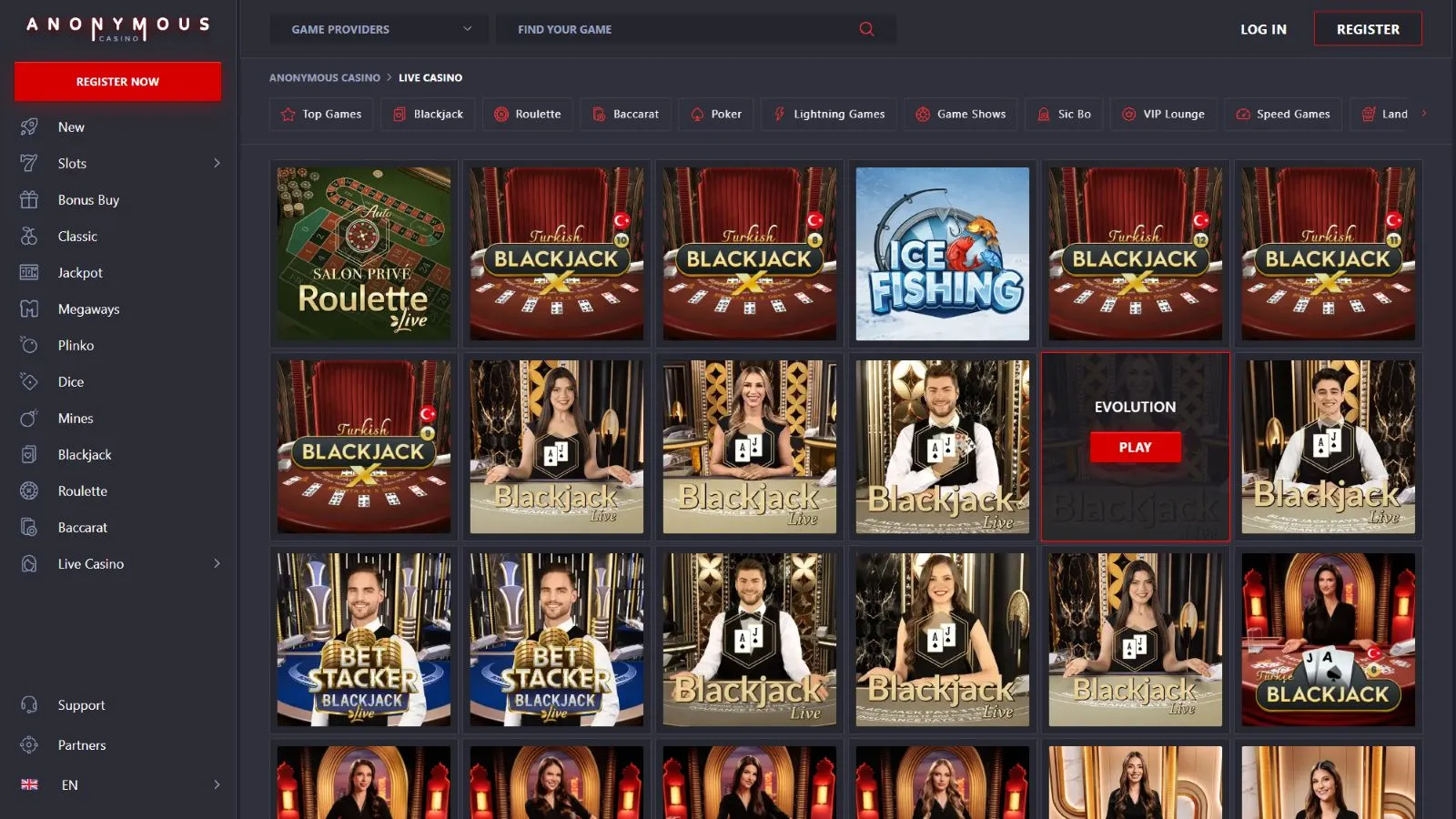 Anon Casino partners with over 20 software providers to provide a library of 4,000+ games. These software providers include:
