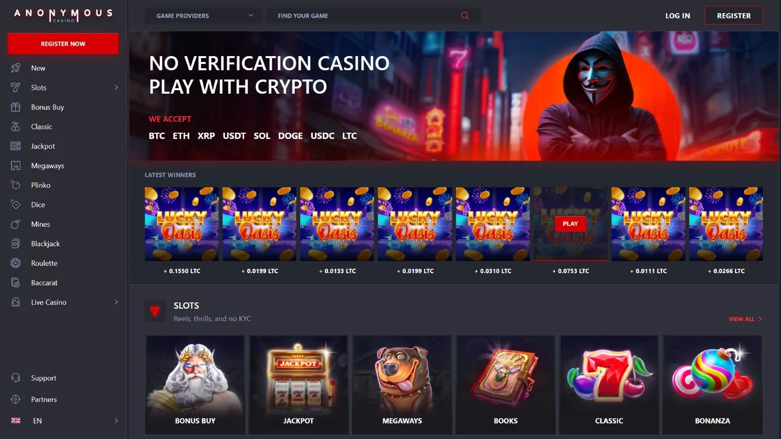 Bonus and promotional offerings aren't a part of Anon Casino’s standard offerings. Instead, the focus is on providing a no-KYC verification experience, regardless of the deposit or withdrawal amount.