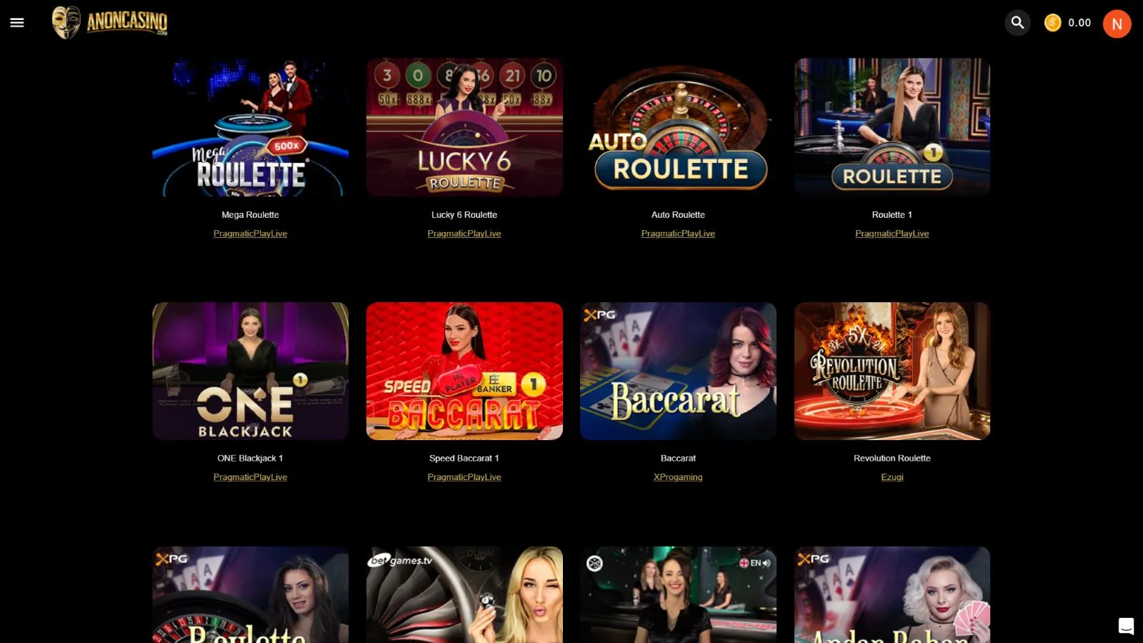 Another delightful section of Anon Casino is the live casino. Unfortunately, the casino lobby is designed in a way that makes it difficult to find all live games on one page. Only about 50 games were found under the “live casino” and “game shows” sections. Surprisingly, using the search option revealed over 450 live games in total.