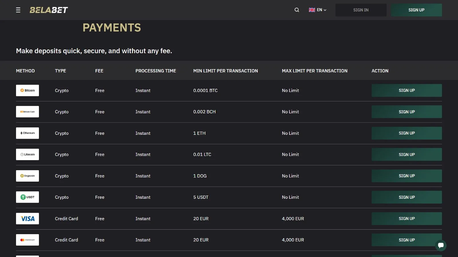 At the time of our review, Belabet does not offer a no-deposit incentive to customers. However, if you want to have fun without making a deposit, you can always check out our list of crypto casinos with no-deposit bonus offers.
