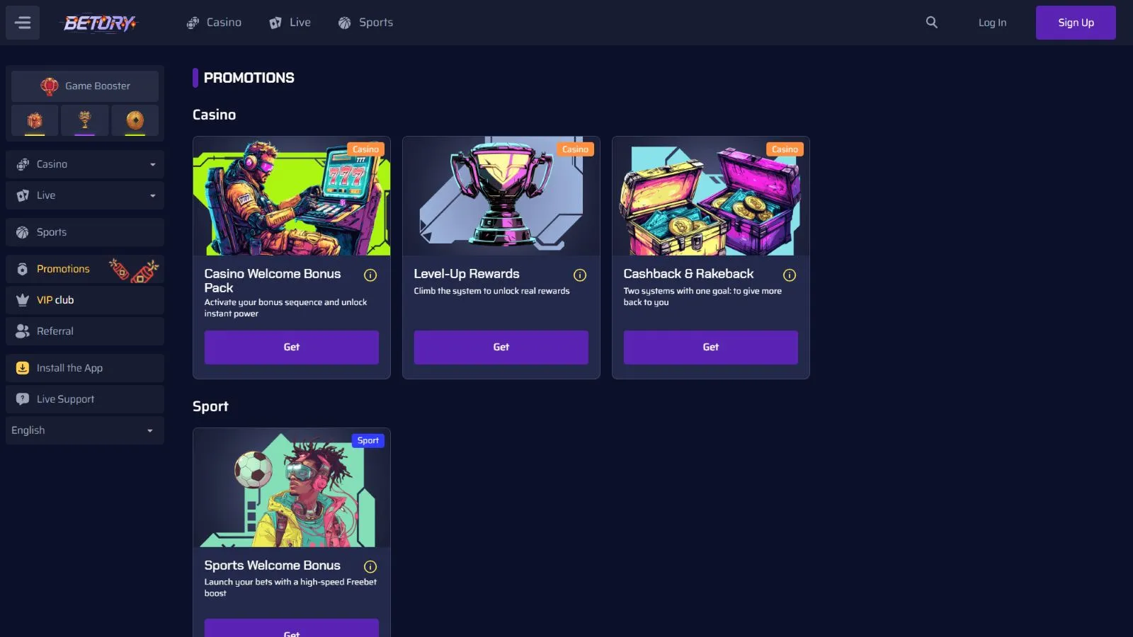 Betory Casino can be a suitable choice if you’re part of the crypto community. The platform lists more than 6,000 games across different categories, and the VIP setup includes cashback and rakeback paid out without rollover, which makes the loyalty structure more practical than most.