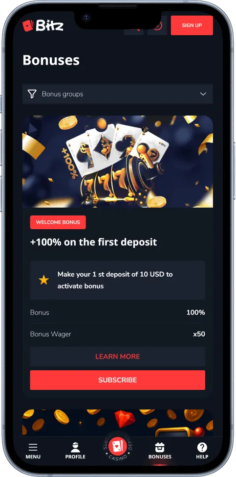 - Visit the Bitz Casino site on your mobile device