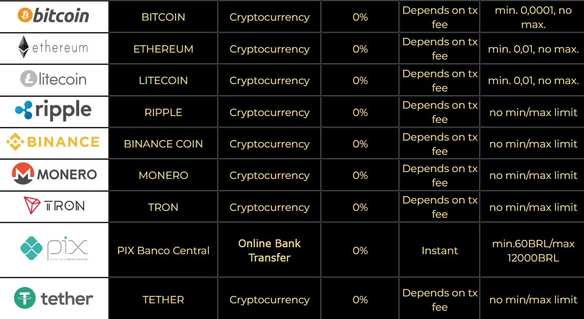 Payment: | Min/max deposit: 0.001 BTC - ∞ | Min/max withdrawal: 150 - 2.000 EUR |