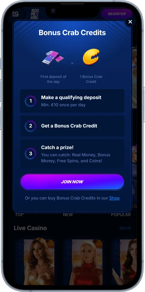 Your rewards for completing these tasks are usually Boomerang Bet Coins, a special currency that can only be used in the casino shop. With these coins, you can buy free spins, free bets, or free bonus money.