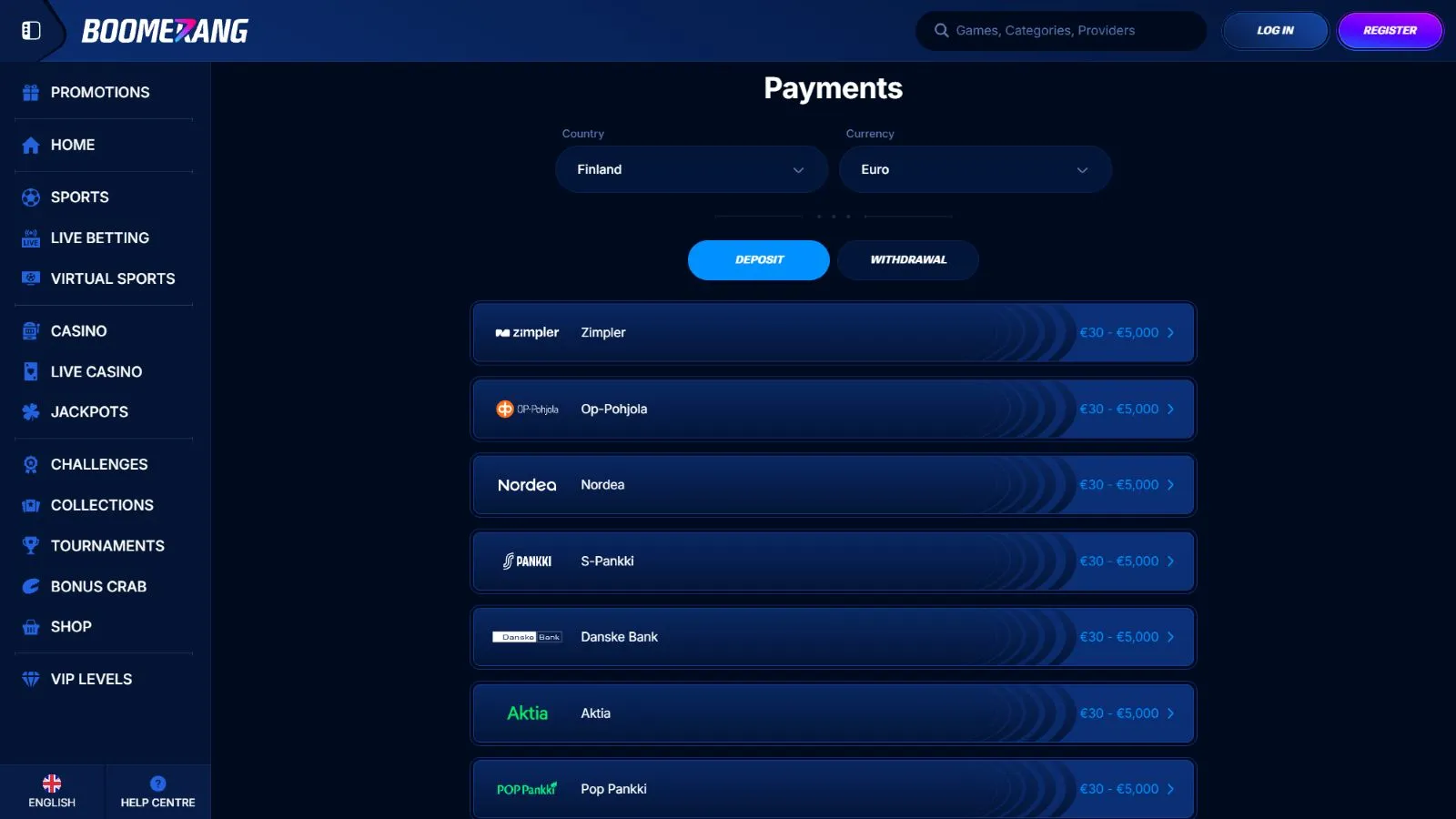 Boomerang Bet Casino Withdrawals