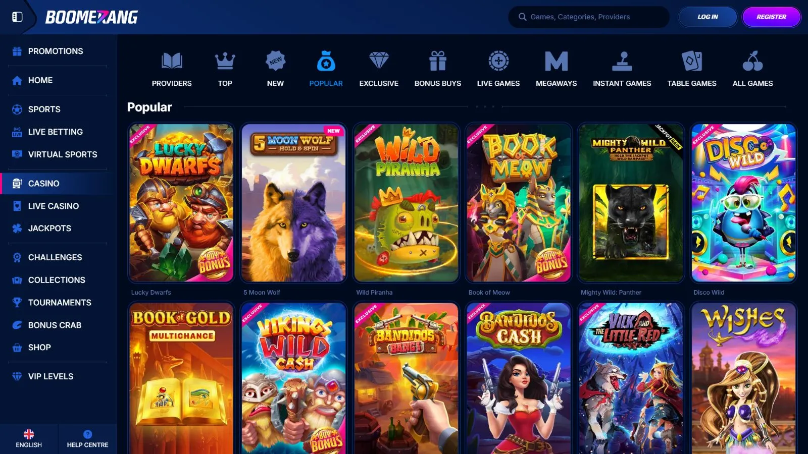 Boomerang Bet Casino Games & Providers