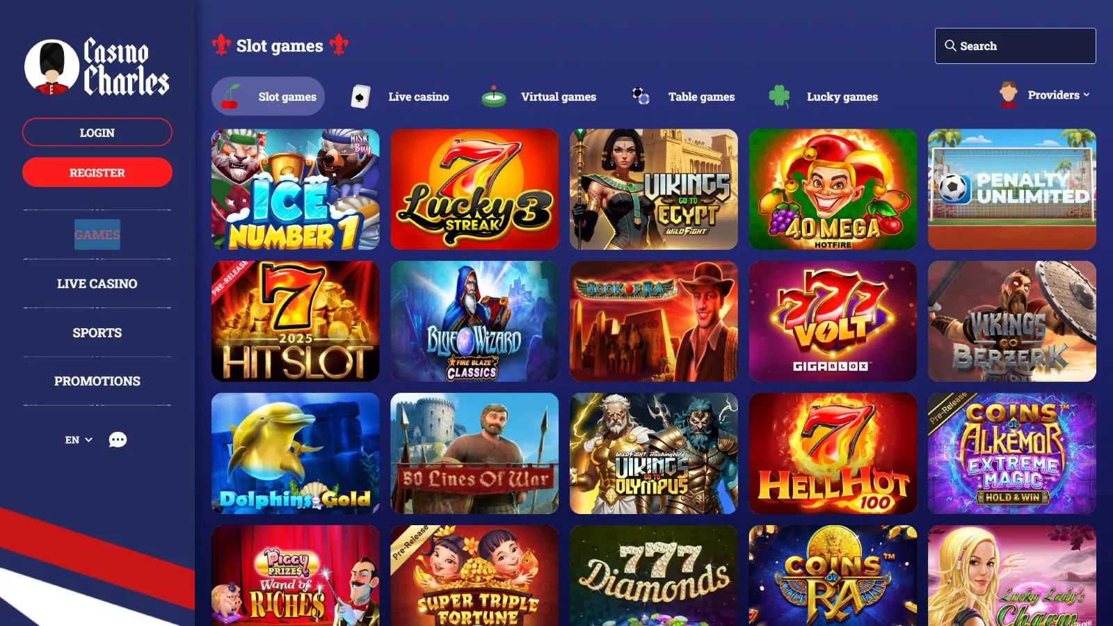 Casino Charles offers over 9,000 slot games with a diverse range of themes and gameplay mechanisms. Some of the most popular categories on the site include classic, jackpots, Megaways, and 3D slots.