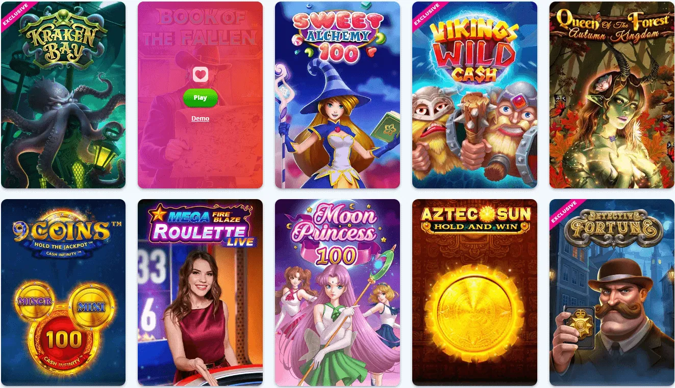 If you want to start playing, but don’t know where to start, here are some of our recommendations: Book of Meow, Shark Time, Starburst XXXtreme, Banditos Cash, Majestic King, Raptor Double Max, Detective Fortune, Aztec Sun Hold and Win, 20 Boost Hot, Fire and Roses Joker, Wolf Fang Volcano, Seven Books Unlimited, Big Bad Wolf Live, Sunny Coin 2 Hold the Spin, and Bullet Hole.