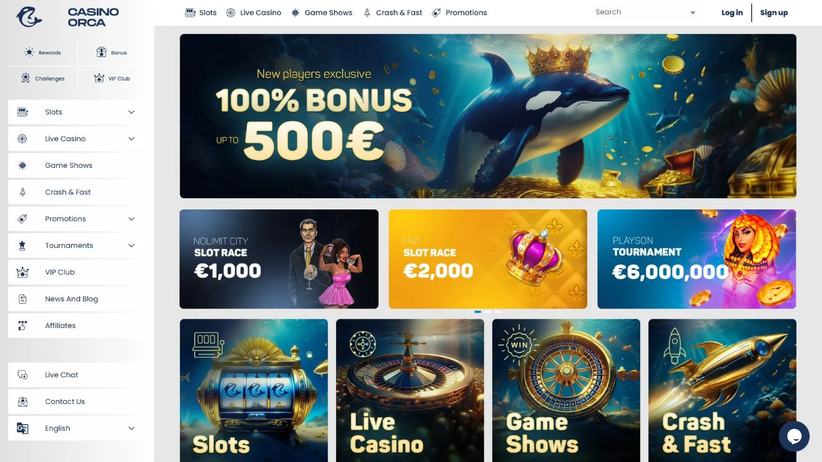 New users on this site receive an amazing no-wager 100% up to €500 bonus on their first deposit. Simply deposit a minimum of €20 and apply the promo code ORCA1 Copied . The bonus is available for use on slot games, except jackpots.