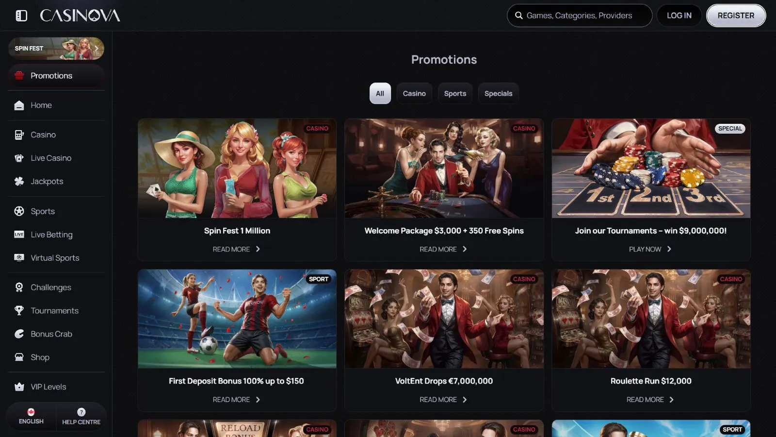 Casinova is pretty generous when it comes to bonuses. Whether you love to claim reload bonuses, free spins, cashback, sports betting deals, or VIP rewards, there’s enough for you. The site also features regular tournaments that come with substantial prizes.