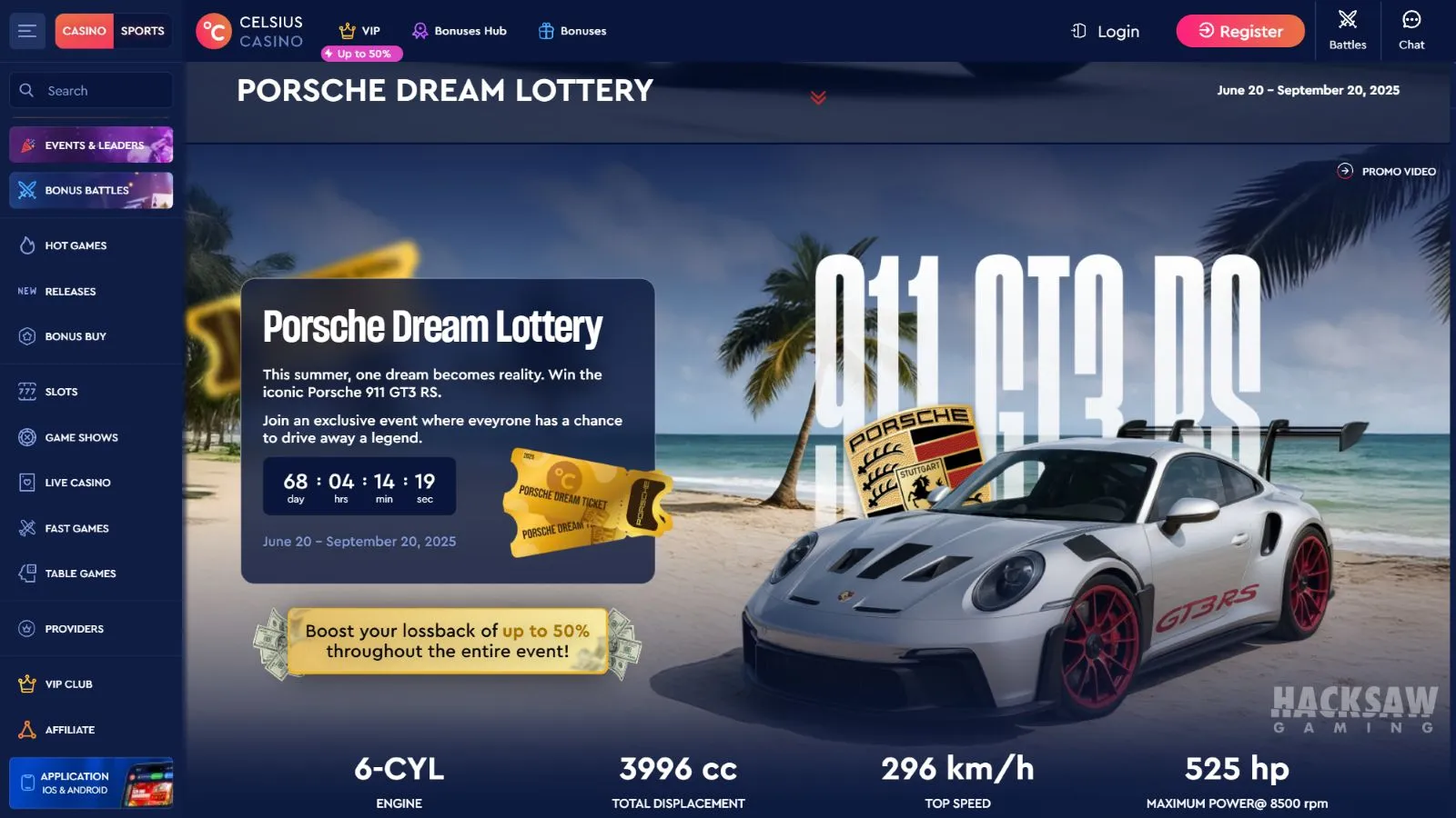 In order to find the casino tournaments at Celsius casino, we invite you to check the featured offers on the casino’s homepage. On the big slider, there are some tournaments that you will want to play. Also, in the “Events” tab, you can find some other tournaments too, where you will be competing for free spins, cash prizes, cash bonuses, or a combination of these.