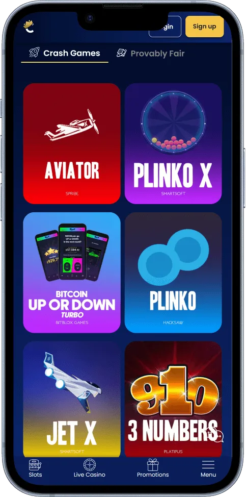It also does well to offer crash games with themes like animals, crypto, cartoons, and sports. There are also a couple of Plinko games in the section. These games are supplied by Spribe, Turbo Games, Smartsoft, OnlyPlay, Hacksaw, and a few others.