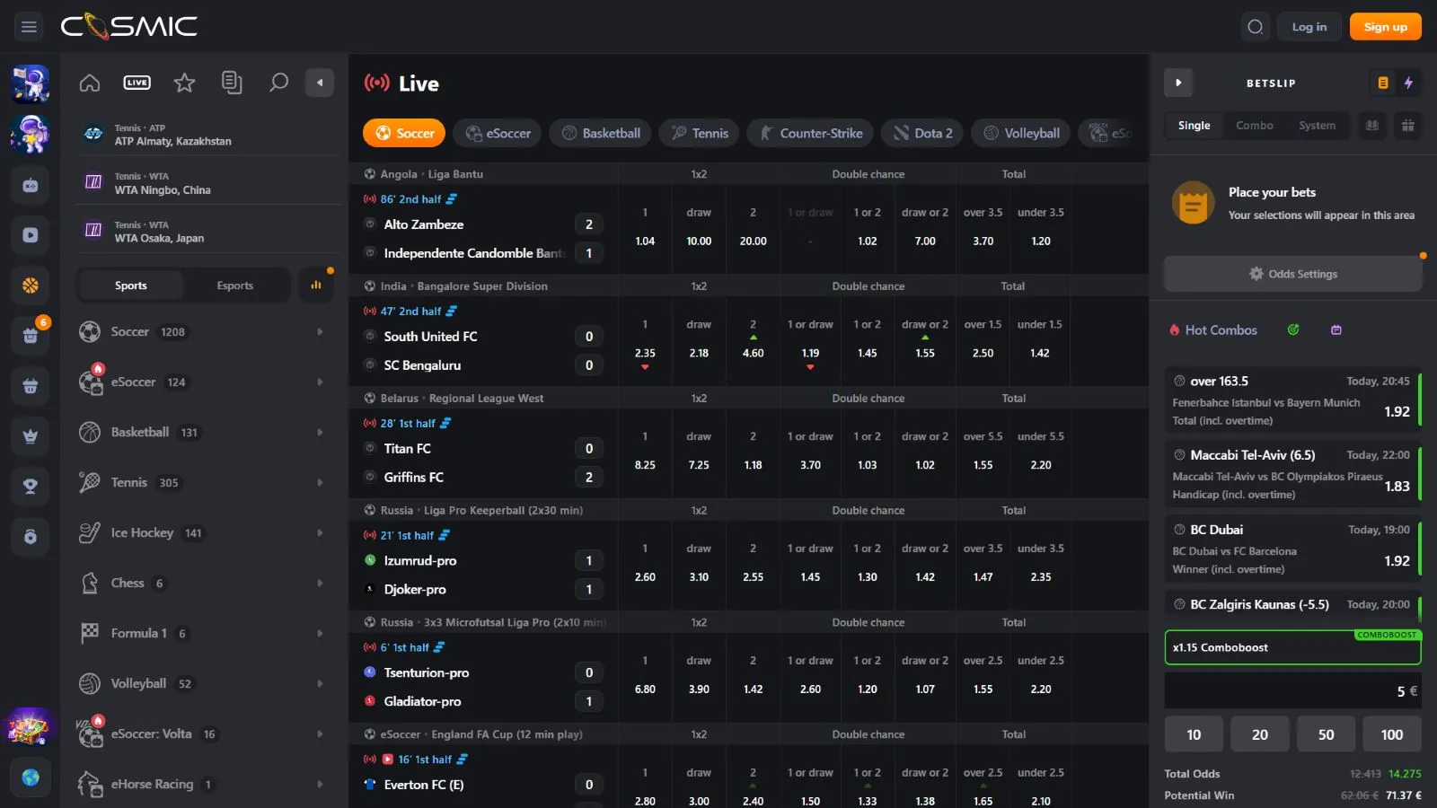 At Cosmicslot Casino, you can enjoy table games as well. Just type Blackjack, Roulette, Baccarat, or your desired game in the search bar, and you are set for a table games adventure. Here you can choose between table games and the live versions of the games. If you feel like playing table games, you can start looking at the games of the 1×2 game provider.