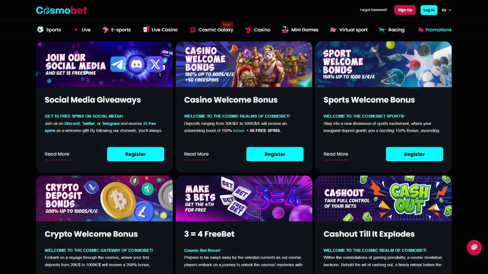 Continue reading this Cosmo Bet review to learn more about the casino games, sports betting markets, bonuses, and other offerings available to you.