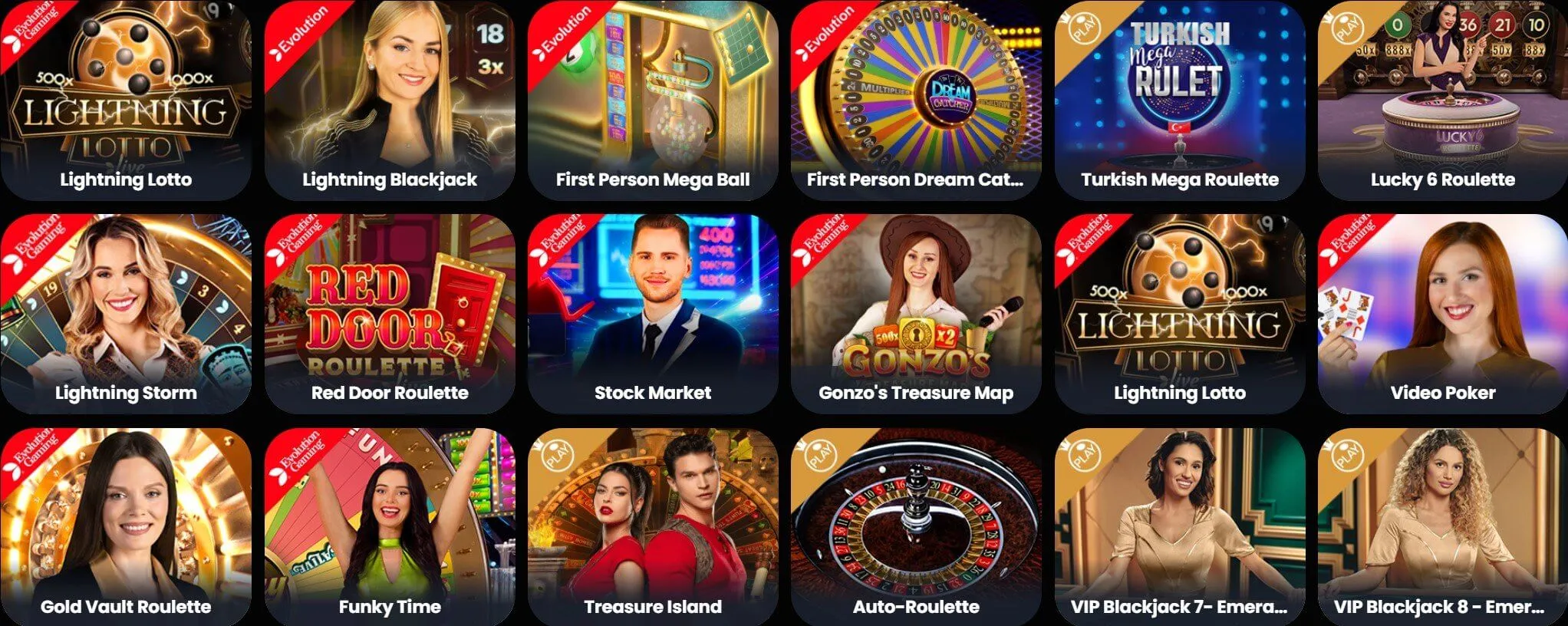 You can play various casino games, including slots, live dealers, table games, crash games, gameshows, video poker, bingo, and others.