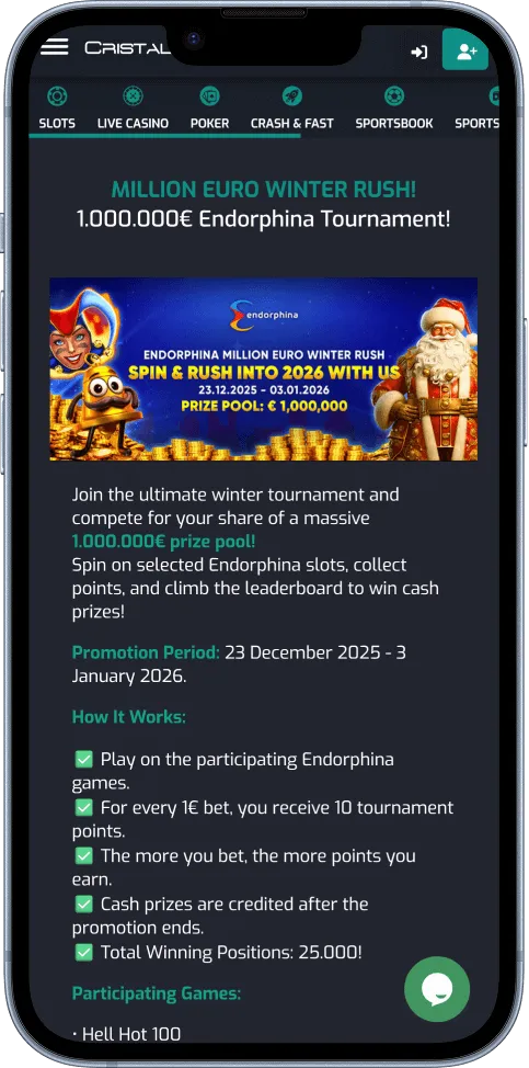 The site delivers a strong mix of features: fast deposits and withdrawals, a huge selection of payment methods, browser-based poker, and one of the most generous sticky-bonus systems on the market. The addition of a full Sportsbook further enhances the platform, making CristalPoker a true all-in-one hub for casino players, poker enthusiasts, and sports bettors.