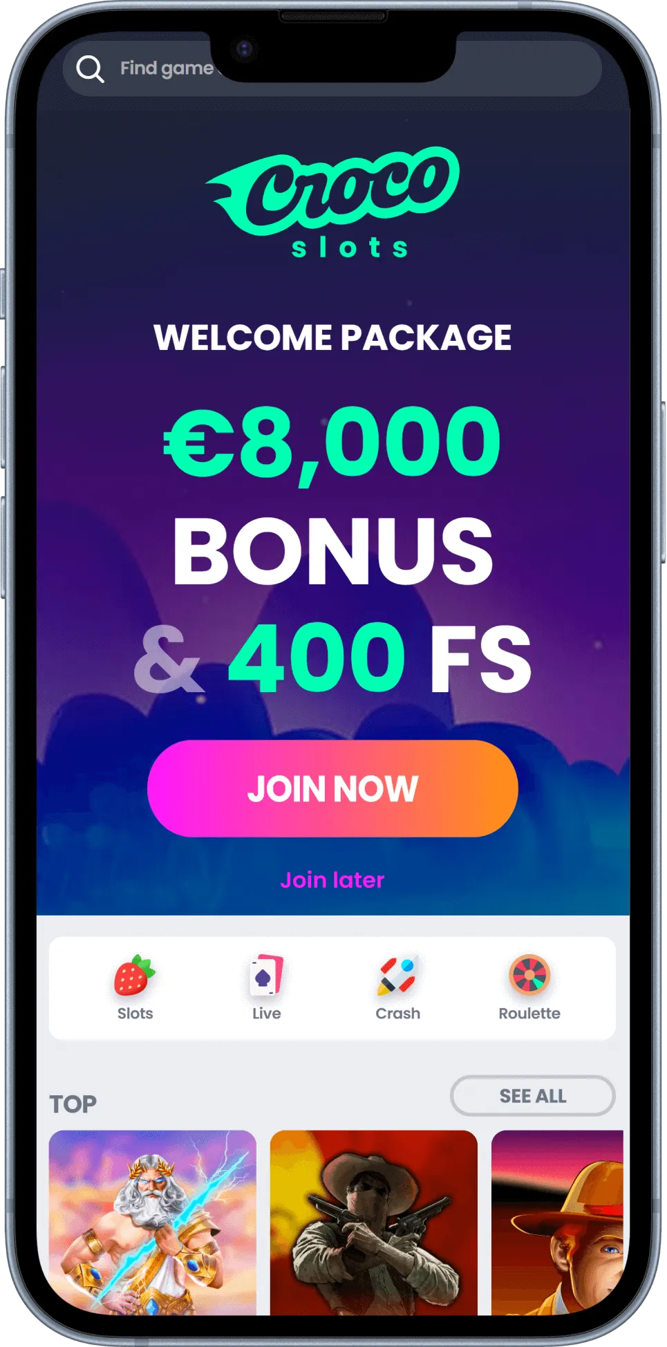 - Visit the Crocoslots site and tap “Join Now” or “Sign Up”